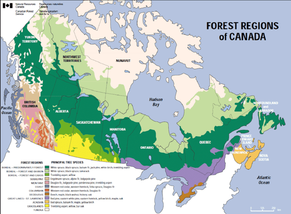 Forest Regions of Canada (Natural Resources Canada 2007, Forest regions classifications. Retrieved July 18, 2011, from ecosys.cfl.scf.rncan.gc.ca/images/classif/forest-reg2_e.pdf)